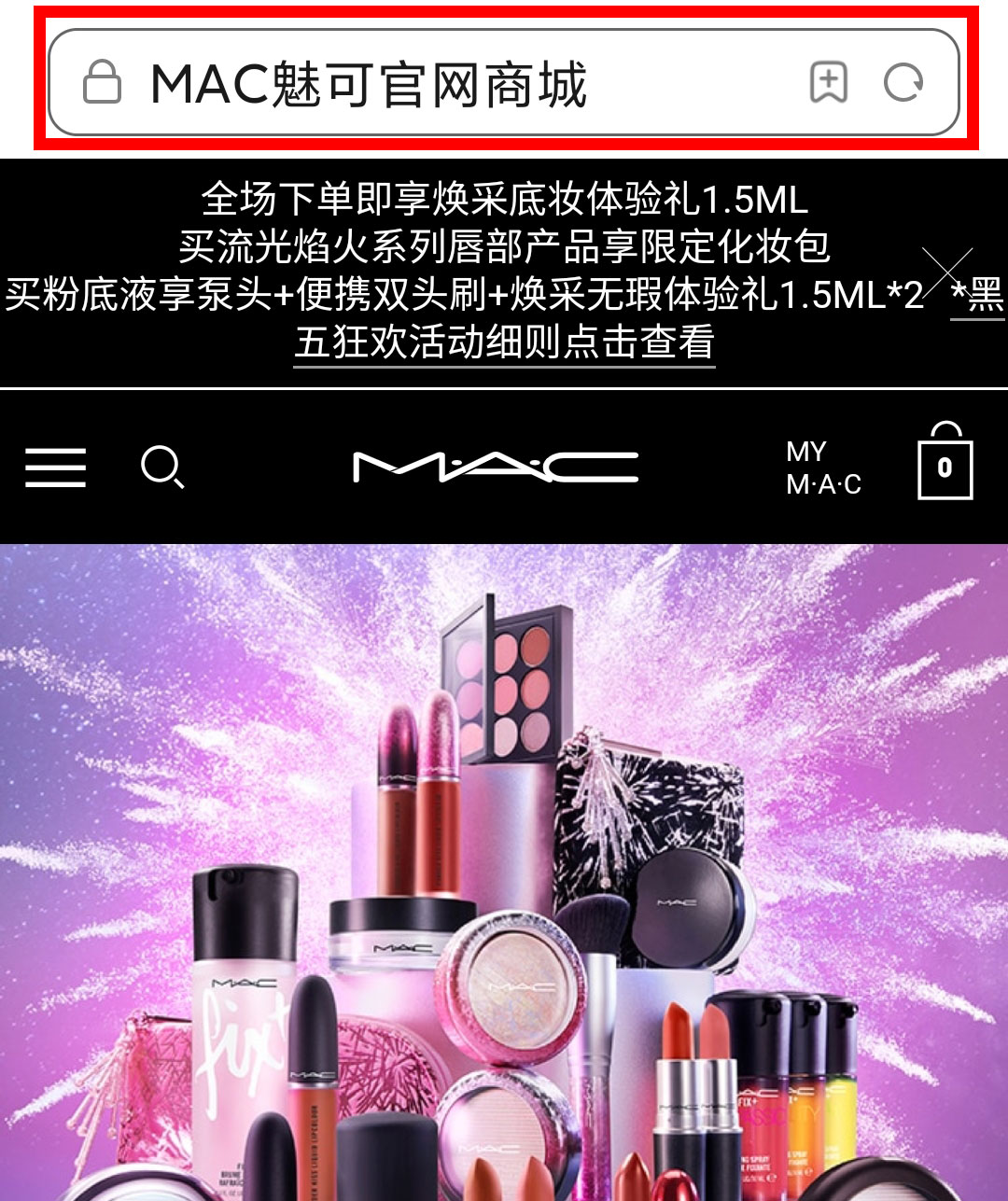 第一步:打开手机浏览器,输入https://www.maccosmetics.com/