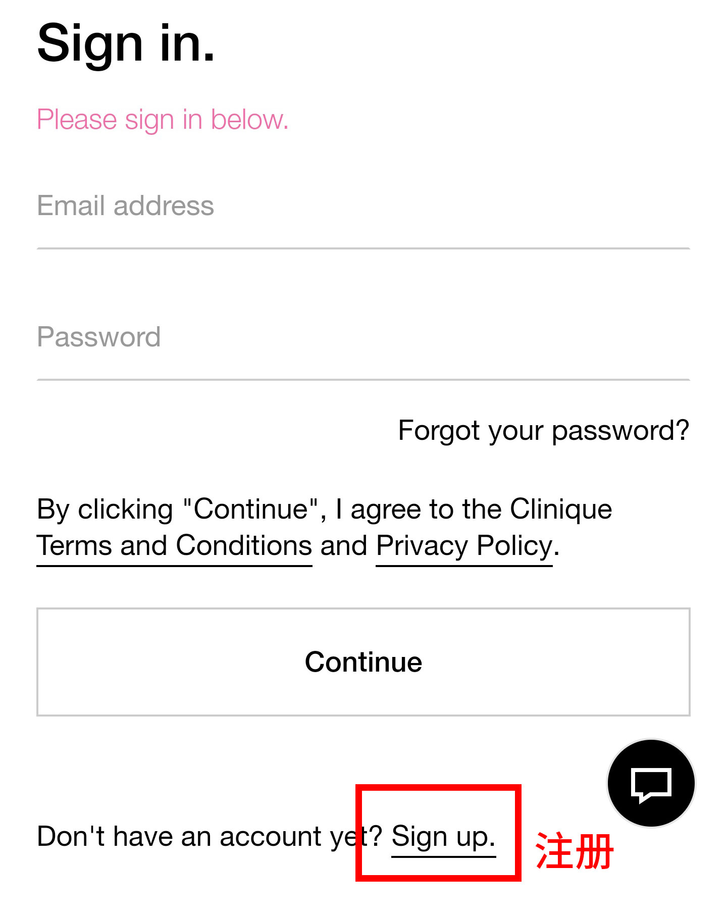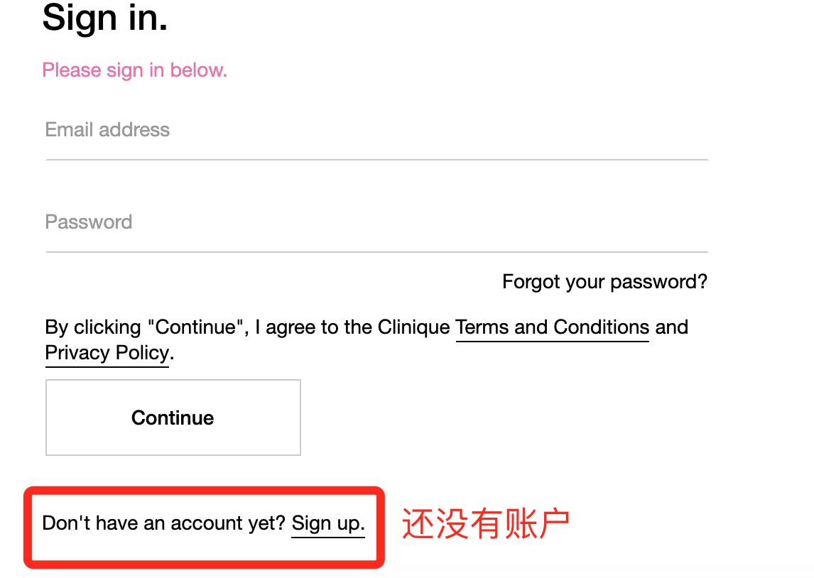 第三步:在登录页面点击下方的Don't have an account yet? Sign up,如下图:
