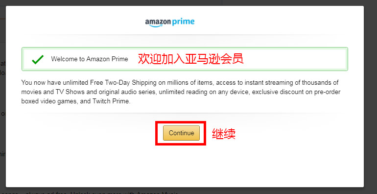 第二步:上一步点击后,会出现一个新的页面,选择"Prime"会员。如下图