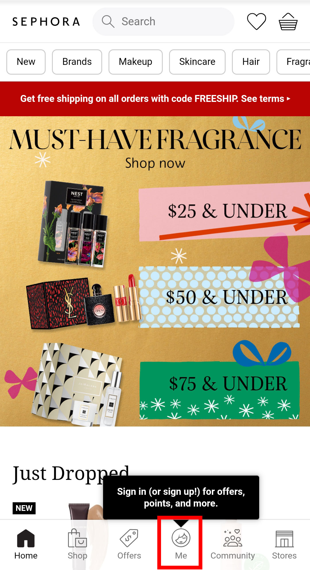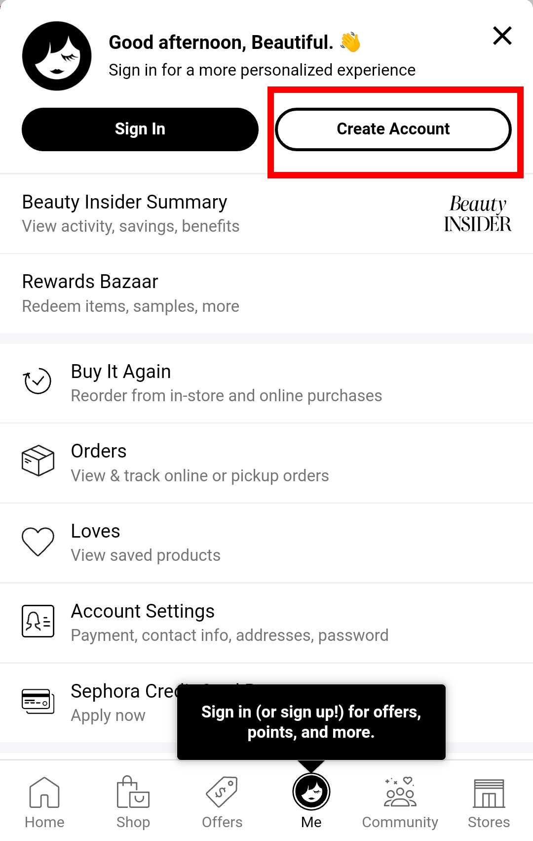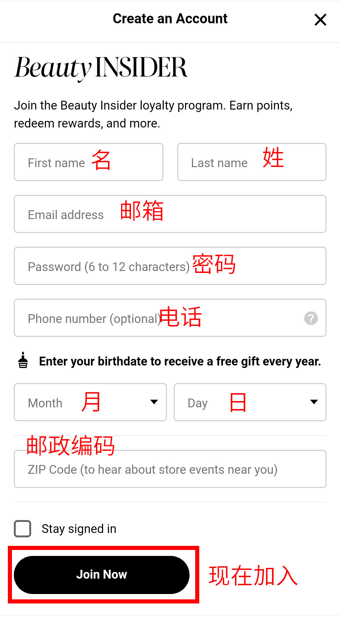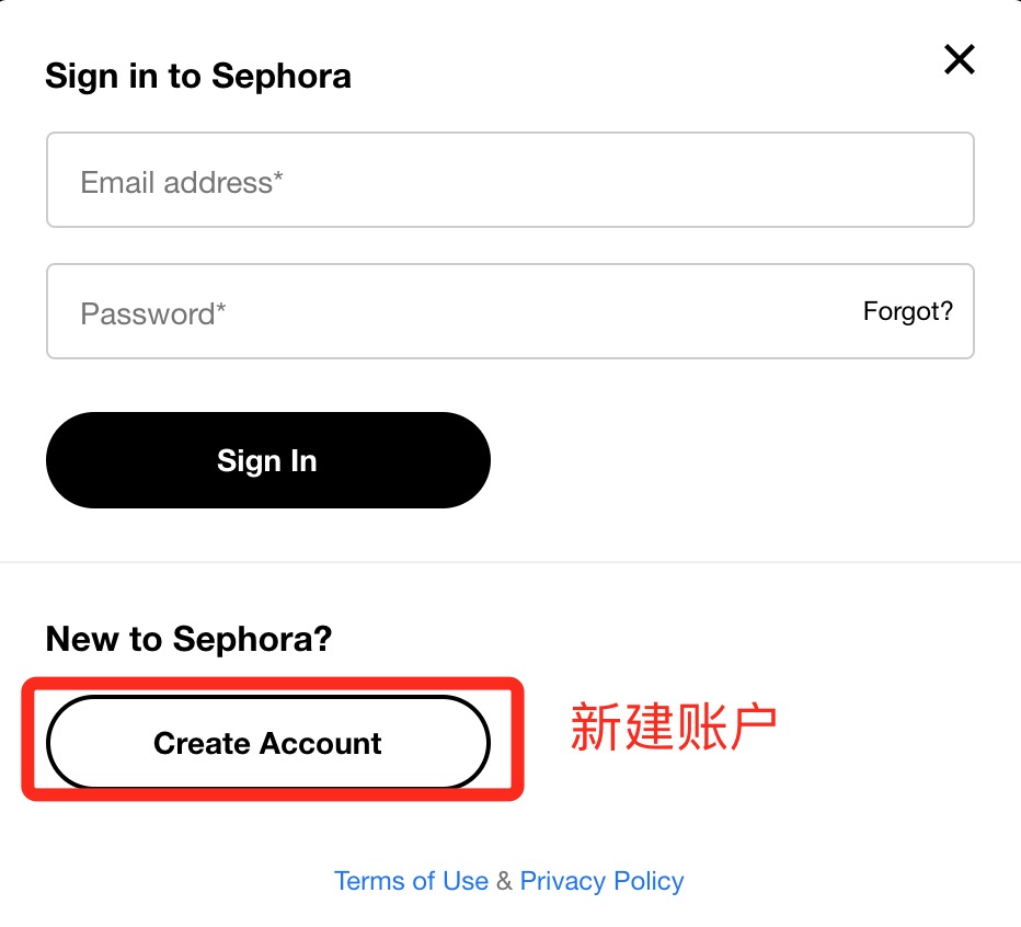 第三步:在登录页面点击下方的New to Sephora? Create Account,如下图: